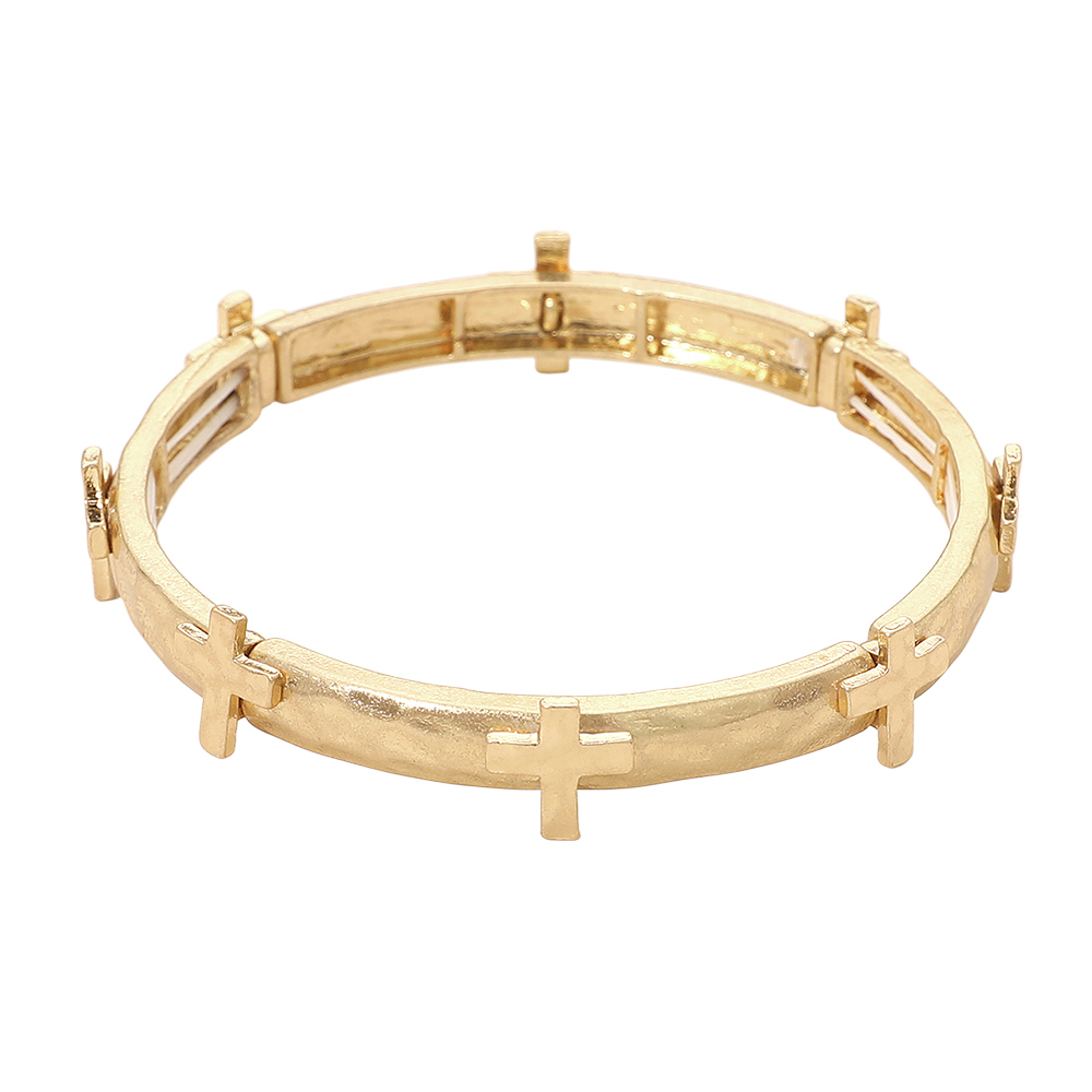 Hammered Brushed Metal Cross Accent Stretch Bracelet
