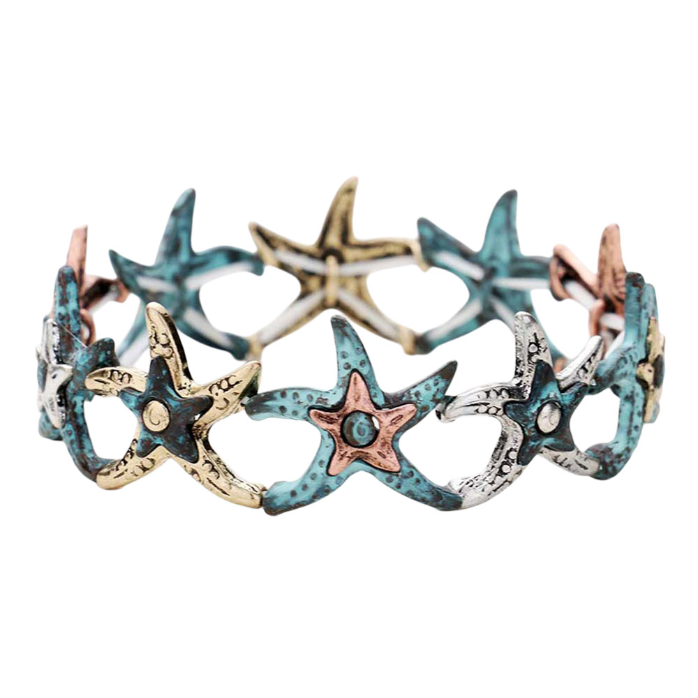 Hammered Metal Starfish Stretch Bracelet