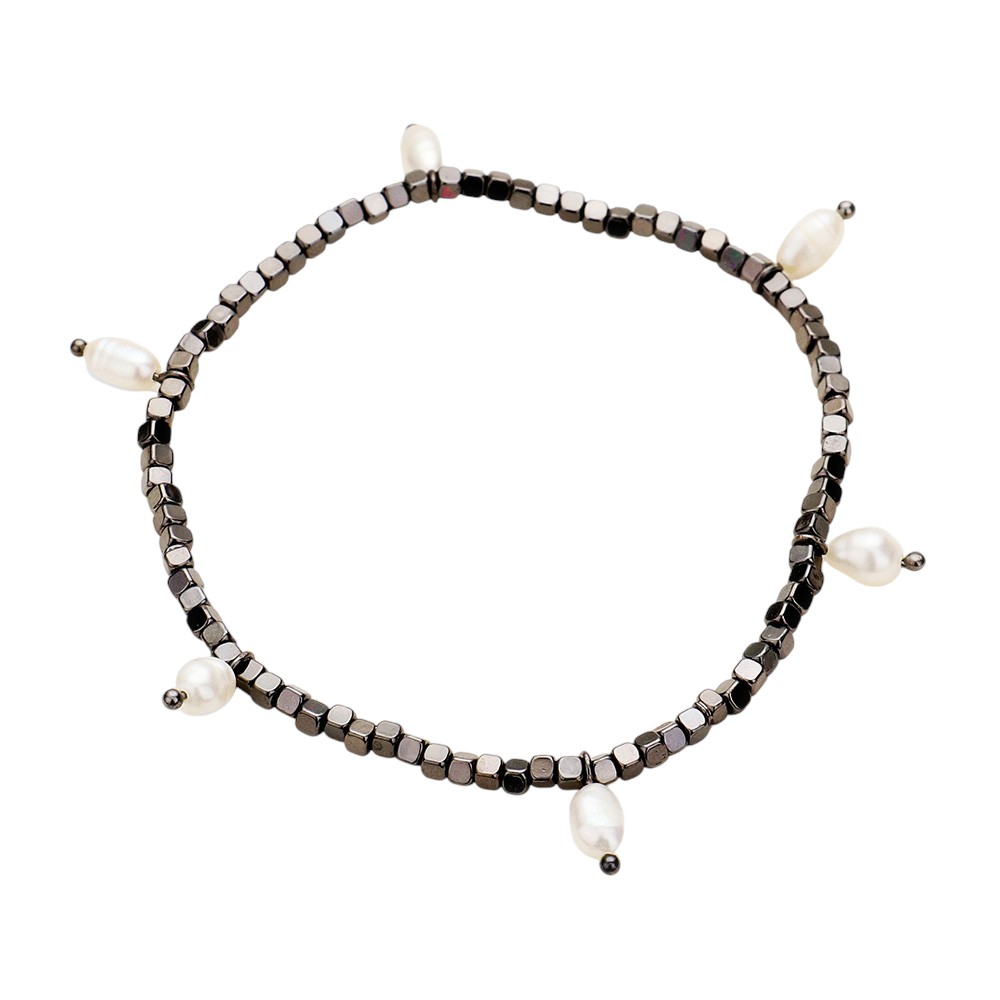 Pearl Round Teardrop Stone Accented Evening Necklace