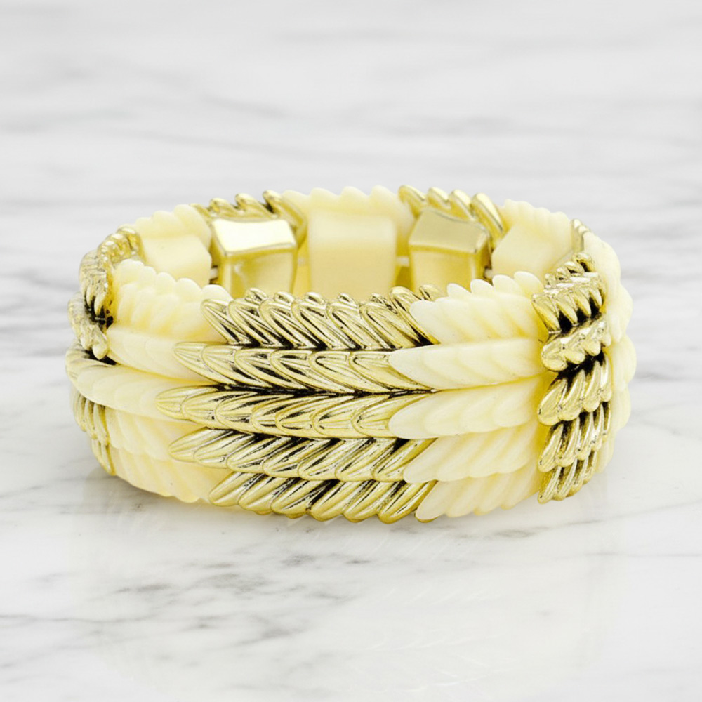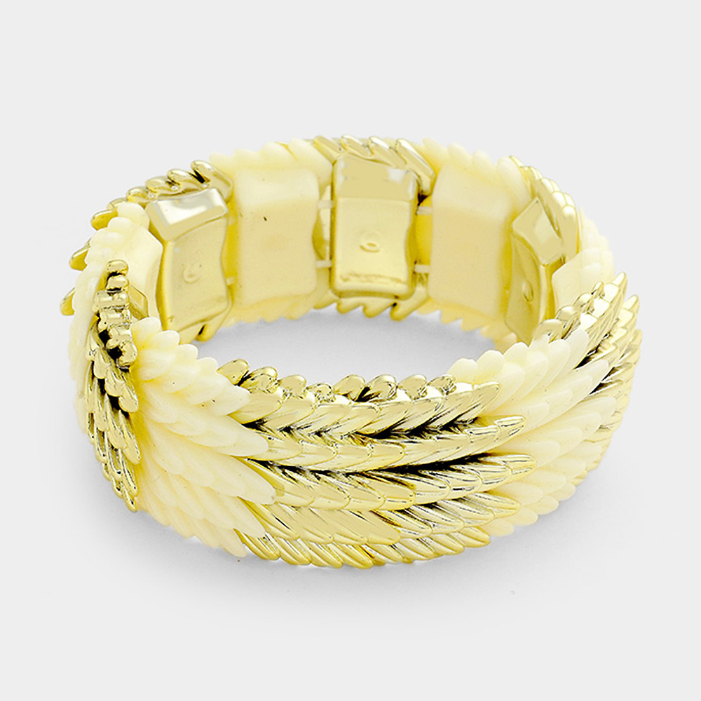 CZ Stone Paved Crown Charm Stainless Steel Ball Beaded Stretch Bracelet