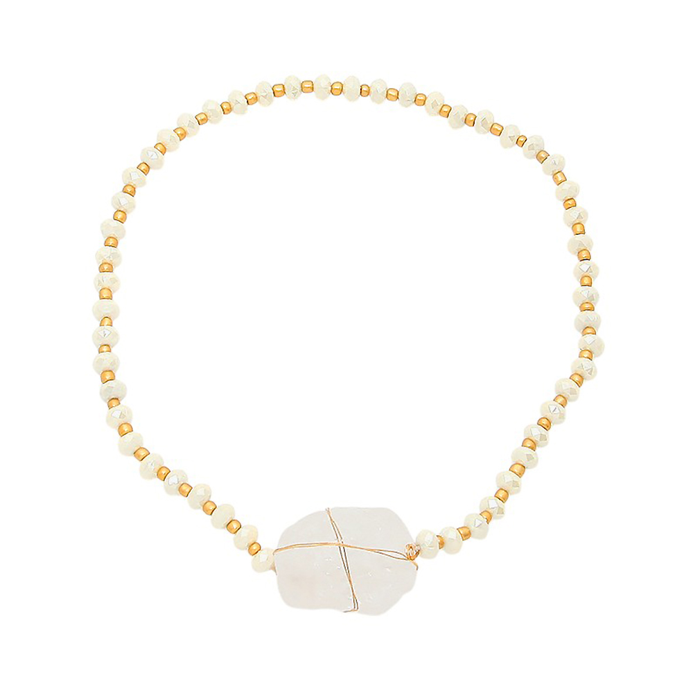 Pearl Pendant Faceted Rectangle Beaded Necklace