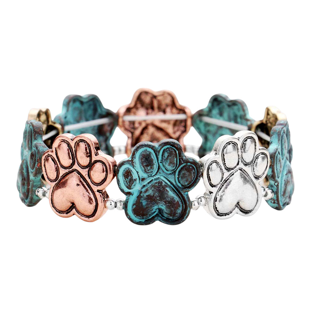 Details • Size : 0.75" H • Stretchable • Cute stretch bracelet featuring alternating paw and heart motifs, designed for pet lovers who want to wear their love proudly. A charming and meaningful accessory that adds personality to any outfit, perfect for gifting or everyday wear. • Lead and Nickel Compliant