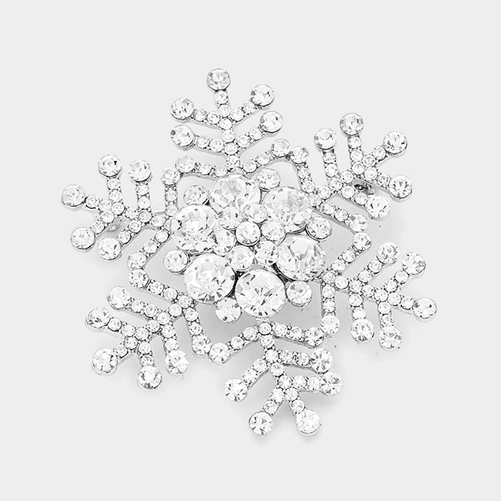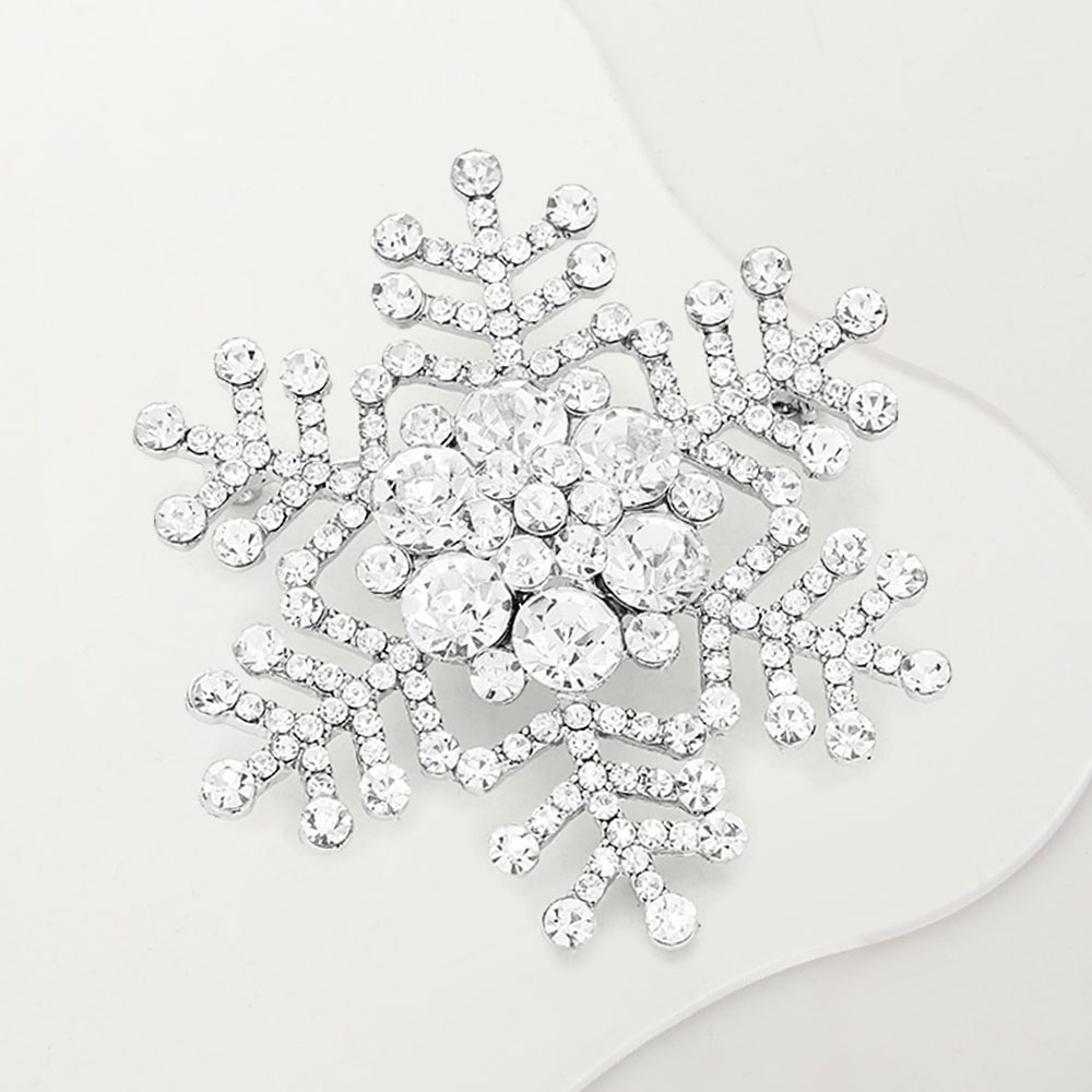 • Elegant snowflake brooch pin adorned with sparkling rhinestones, perfect for adding a festive touch to winter outfits, coats, scarves, or hats. Ideal accessory for holiday parties, weddings, or as a thoughtful seasonal gift. A stylish way to showcase charm and elegance during the winter season.