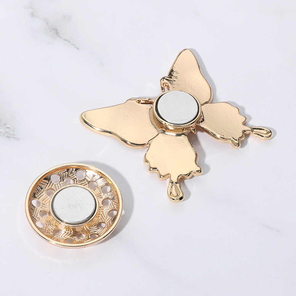 • Charming butterfly magnetic brooch featuring intricate wing patterns and a polished finish. Perfect for elevating any outfit, this detachable pin adds a graceful accent to blazers, scarves, or handbags, blending elegance and sophistication with a touch of artistic flair.