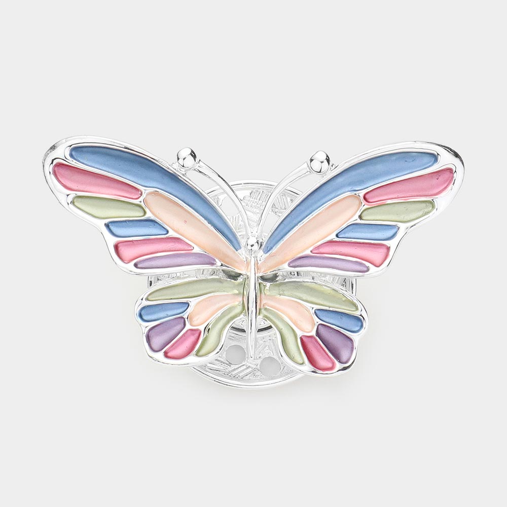 Crushed Colored Metal Flower Butterfly Link Dangle Earrings
