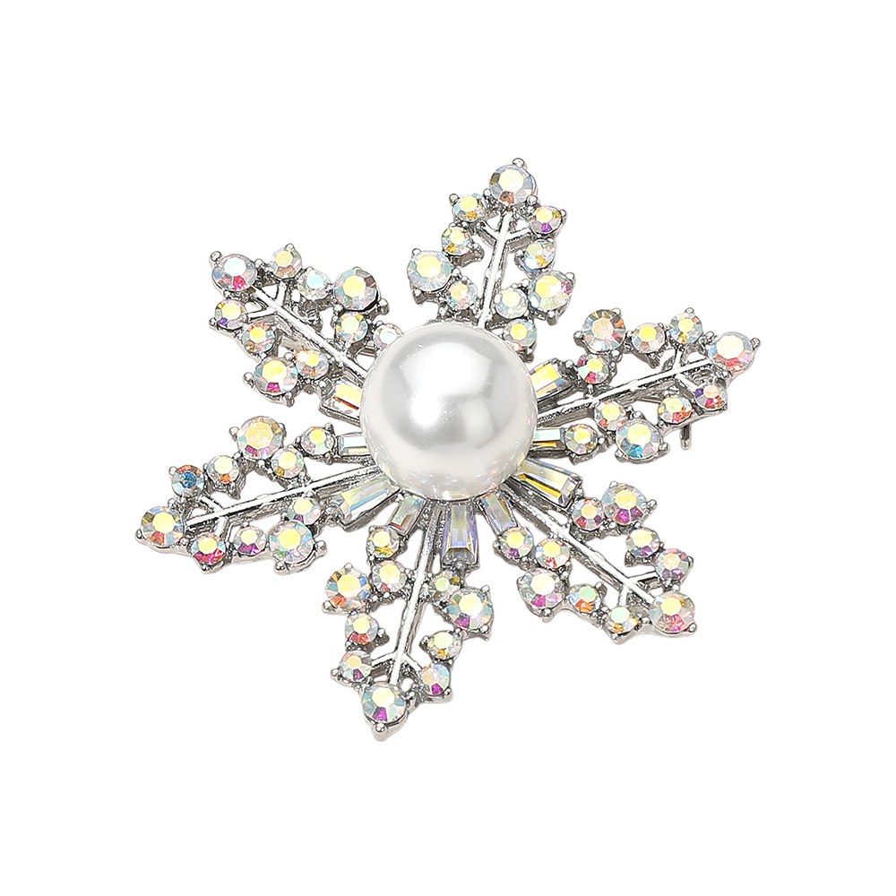 Details • Size : 2.3" X 2.1" • Pin Brooch • Add winter-inspired elegance with this snowflake brooch featuring sparkling rhinestones and a timeless design. Perfect for weddings, parties, or gifting, this brooch enhances coats, dresses, and scarves with a touch of sophistication and festive charm. • Lead and Nickel Compliant