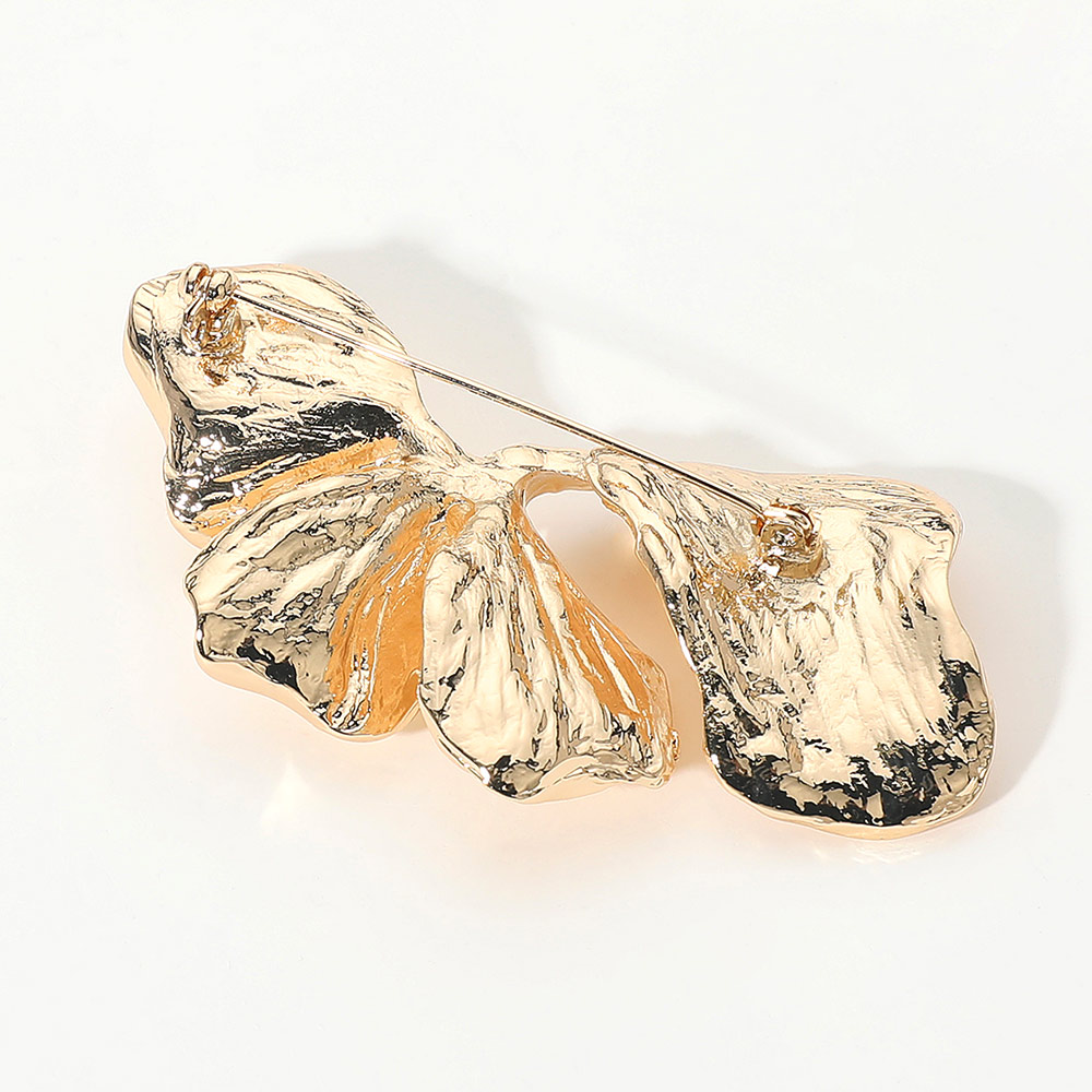 Details • Size : 2.75" X 1.5" • Pin Brooch • Elegant oversized brooch featuring sculpted petal-inspired shapes with a textured, organic look. A statement accessory perfect for coats, scarves, dresses or bags, adding artistic flair and bold sophistication to any outfit. Ideal for special events or elevated everyday style. • Gold Dipped • Lead and Nickel Compliant