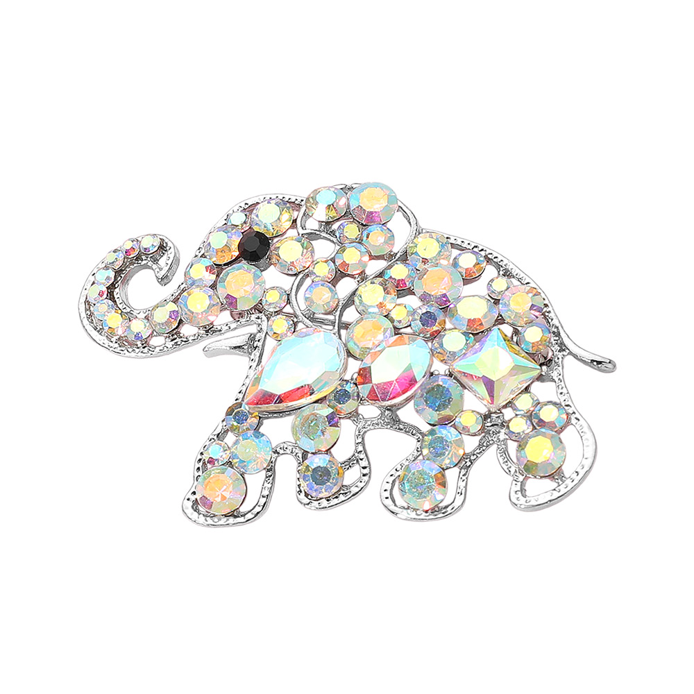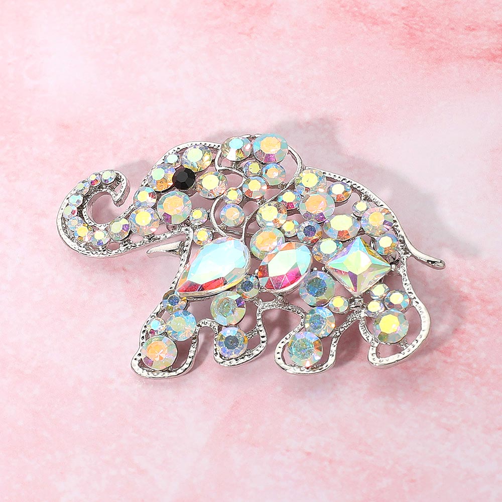 • Bring charm and elegance to your look with this jeweled elephant brooch, adorned with sparkling stones for a radiant finish. Perfect as a statement accessory, it adds a playful yet sophisticated touch to jackets, dresses, scarves, or bags. A versatile animal pin ideal for gifting or personal style.