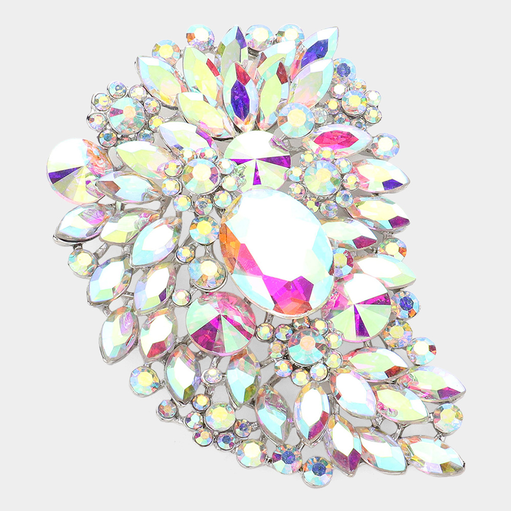 Details • Size : 3" X 4" • Pin Brooch • Eye-catching statement brooch featuring a clustered gemstone design that adds instant glamour to any outfit. Perfect for special occasions or elevating everyday style, this radiant accessory brings a touch of elegance and sparkle to your look. • Lead and Nickel Compliant