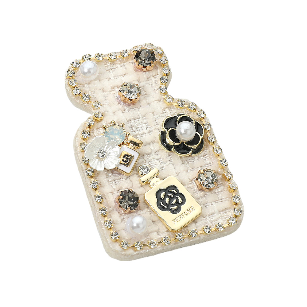 Details • Size : 1.7" X 2.5" • Dual : Pin Brooch / Hair Clip • Elevate your hairstyle with this perfume bottle inspired hair clip adorned with rhinestones, pearls, and floral accents. Its detailed design brings sophistication to parties, events, or casual wear, making it a versatile statement piece for any occasion. • Lead and Nickel Compliant