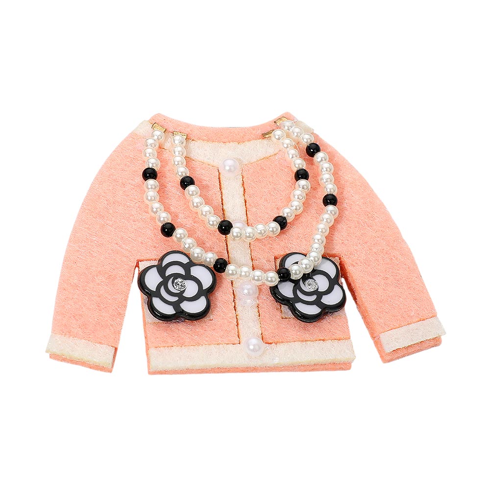 Details • Size : 3" X 2.25" • Dual : Pin Brooch / Hair Clip • Stylish dual-function brooch and hair clip shaped like a jacket, adorned with layered pearl chains and floral accents. Perfect for enhancing jackets, bags, or hairstyles, offering a touch of timeless fashion elegance with a versatile and sophisticated design. • Lead and Nickel Compliant