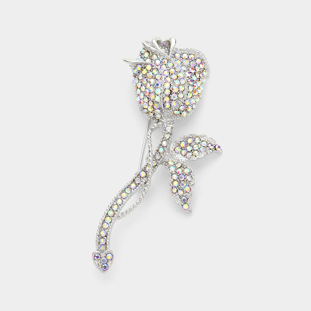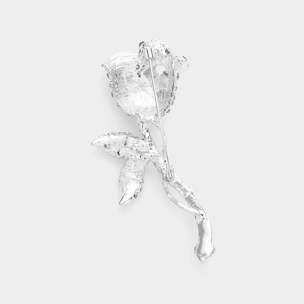 Rhinestone Embellished Rose Flower Pin Brooch