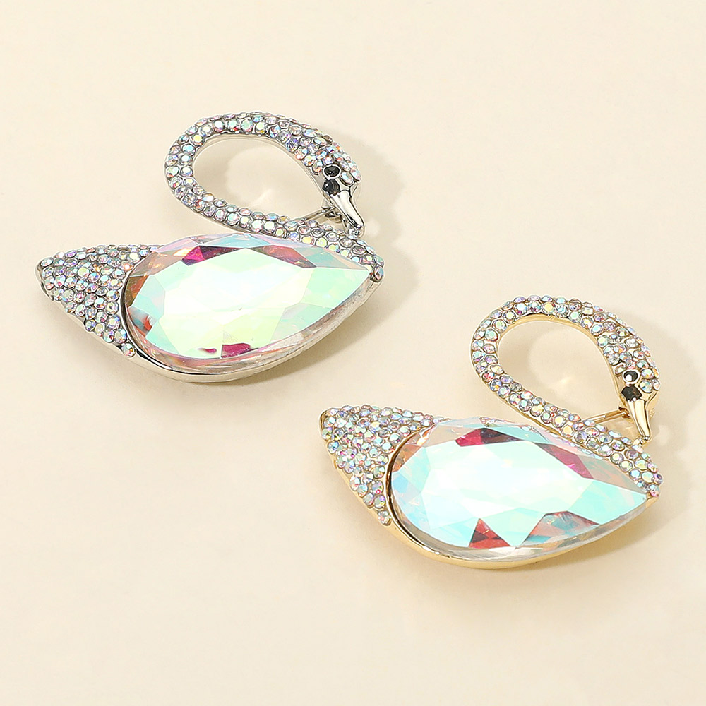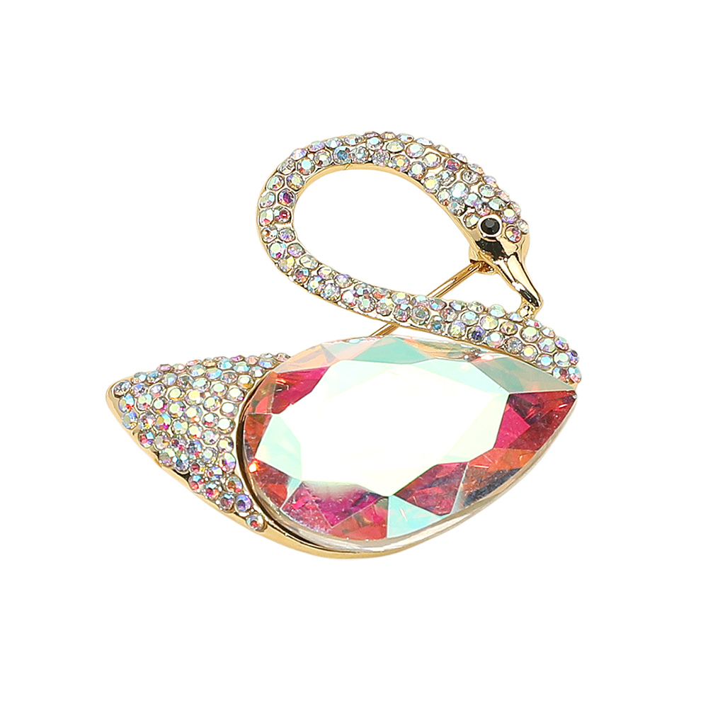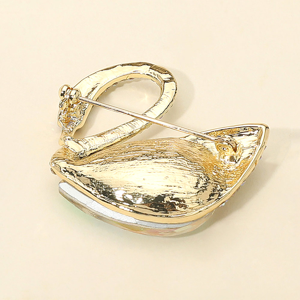• Add a touch of sophistication with this elegant swan brooch featuring sparkling crystal accents and a radiant gemstone centerpiece. Perfect for enhancing formal attire, evening wear, or as a thoughtful gift, it blends timeless charm with eye-catching brilliance.