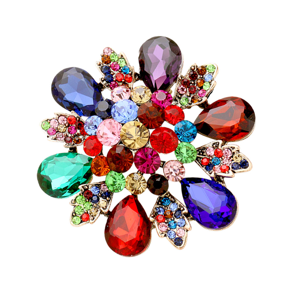 Floral Glass Stone Pin Brooch Floral Glass Stone Pin Brooch Floral Glass Stone Pin Brooch