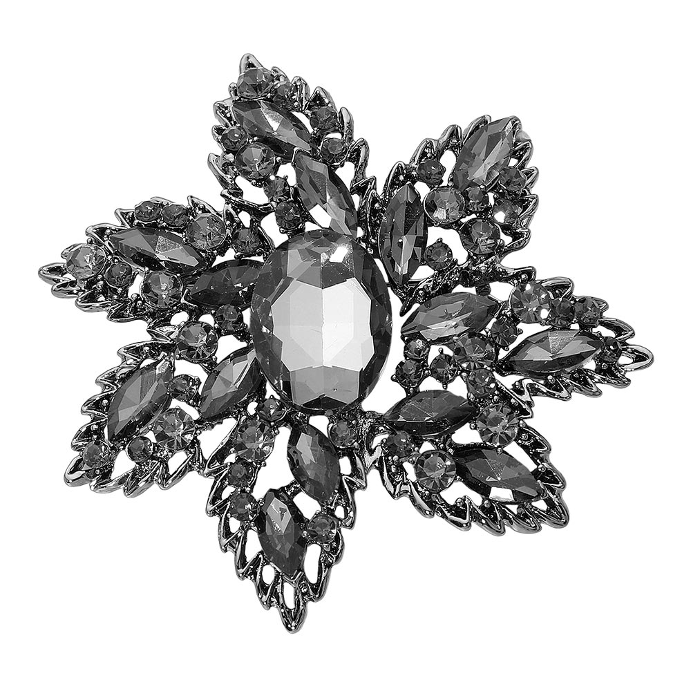 • This ornate floral brooch features an intricately layered design with a bold faceted centerpiece surrounded by shimmering accents. Its radiant, sculpted silhouette adds a refined touch to formalwear, evening outfits, or special-occasion ensembles, creating a timeless statement full of sophistication.
