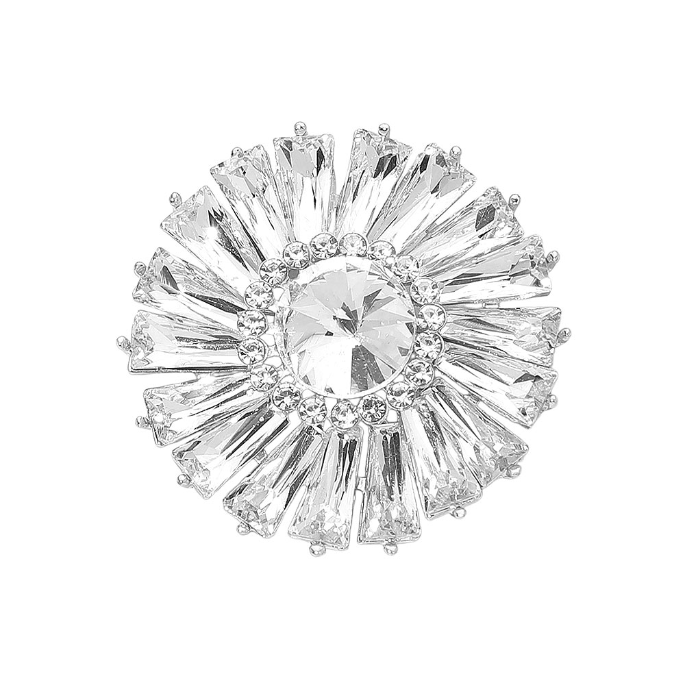 • Make a statement with this radiant burst brooch featuring a dazzling faceted gemstone centerpiece surrounded by precision-cut accents. Its bold, symmetrical design adds instant glamour, perfect for elevating evening wear, formal attire, or stylish outerwear.