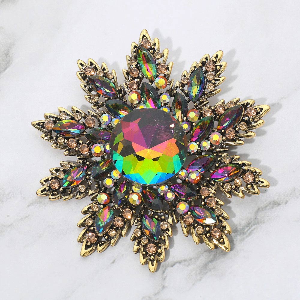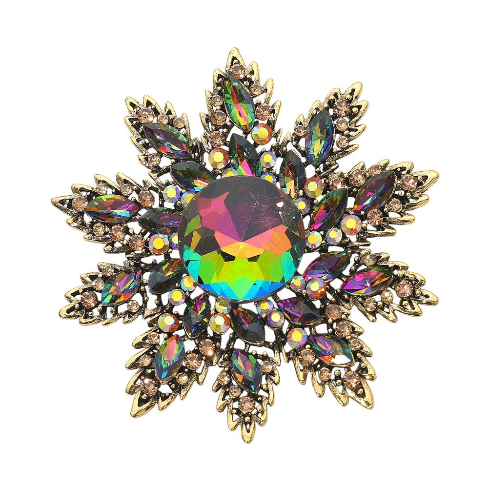 • Make a statement with this crystal floral starburst brooch, featuring a radiant layered design and a brilliant center stone that catches the light beautifully. A versatile accessory for elevating jackets, scarves, handbags, or special occasion looks.