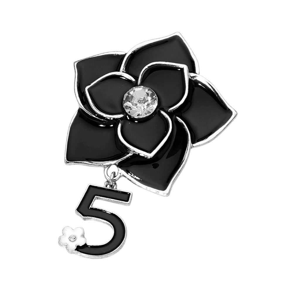 Stone Pointed Enamel Flower Number Five Dangle Pin Brooch