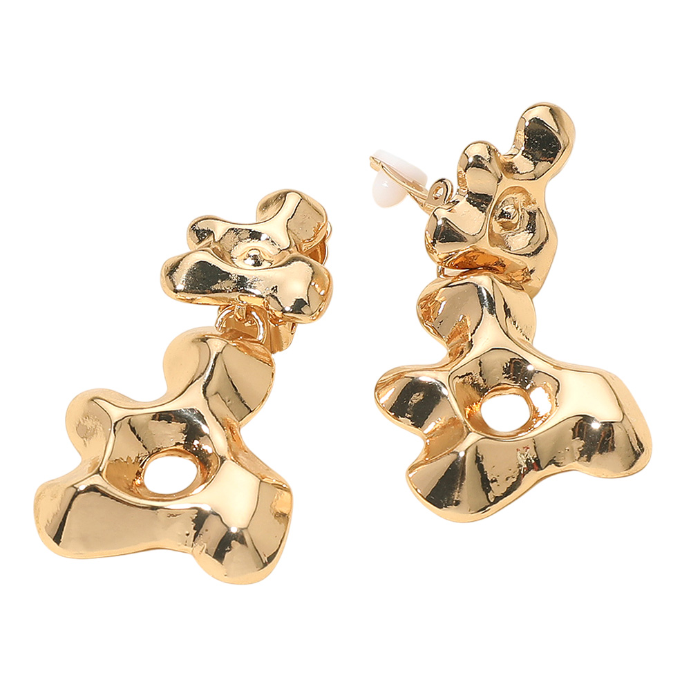 Details • Size : 1.1" X 2.1" • Clip On • Bold abstract clip-on earrings featuring sculptural shapes with cut-out details. Designed for non-pierced ears, these earrings make a modern statement, adding artistic flair and contemporary style to casual outfits or elevating dressy looks with unique fashion appeal. • Lead and Nickel Compliant