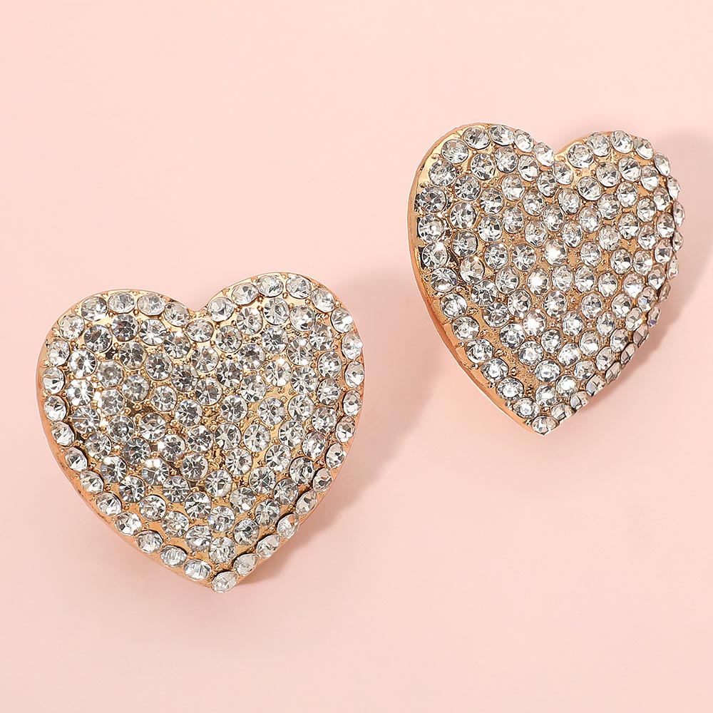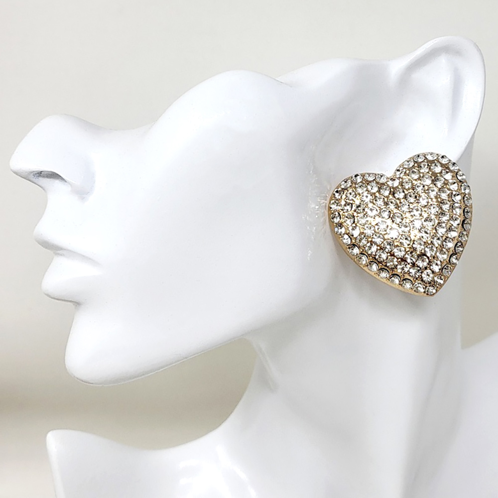 • Classic heart shaped clip on earrings designed with a pavĂ© style surface for a refined yet playful look. Ideal for everyday wear, gifting, or seasonal merchandising, these versatile studs pair easily with casual or dressy outfits and are a popular choice for boutiques and accessory collections.