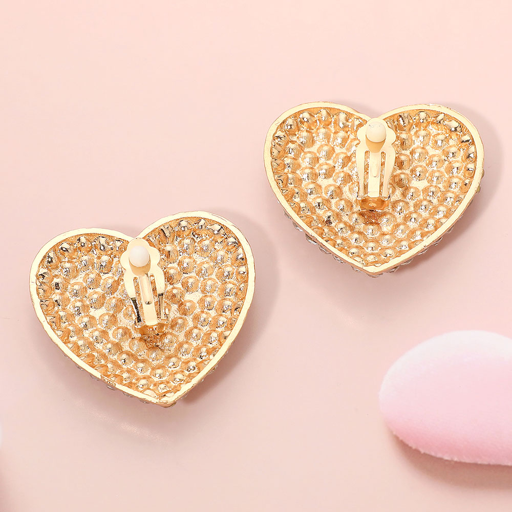 Bold Rhinestone Paved Heart Clip On Earrings
