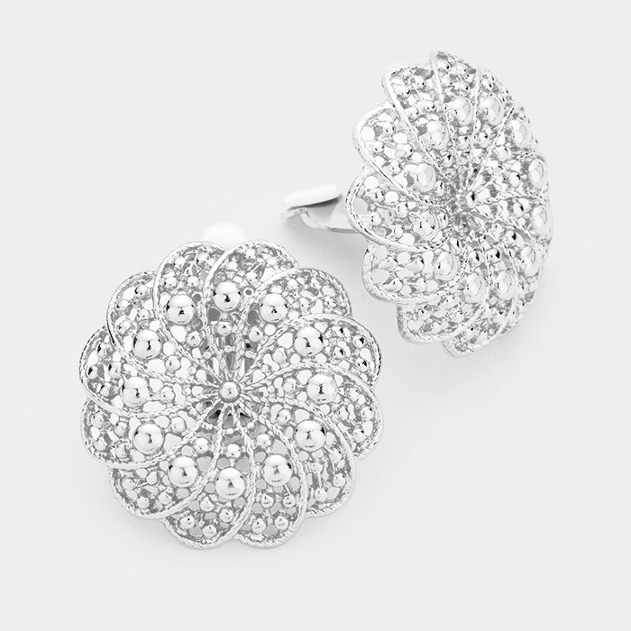 Crystal Embellished Floral Metal Clip On Earrings