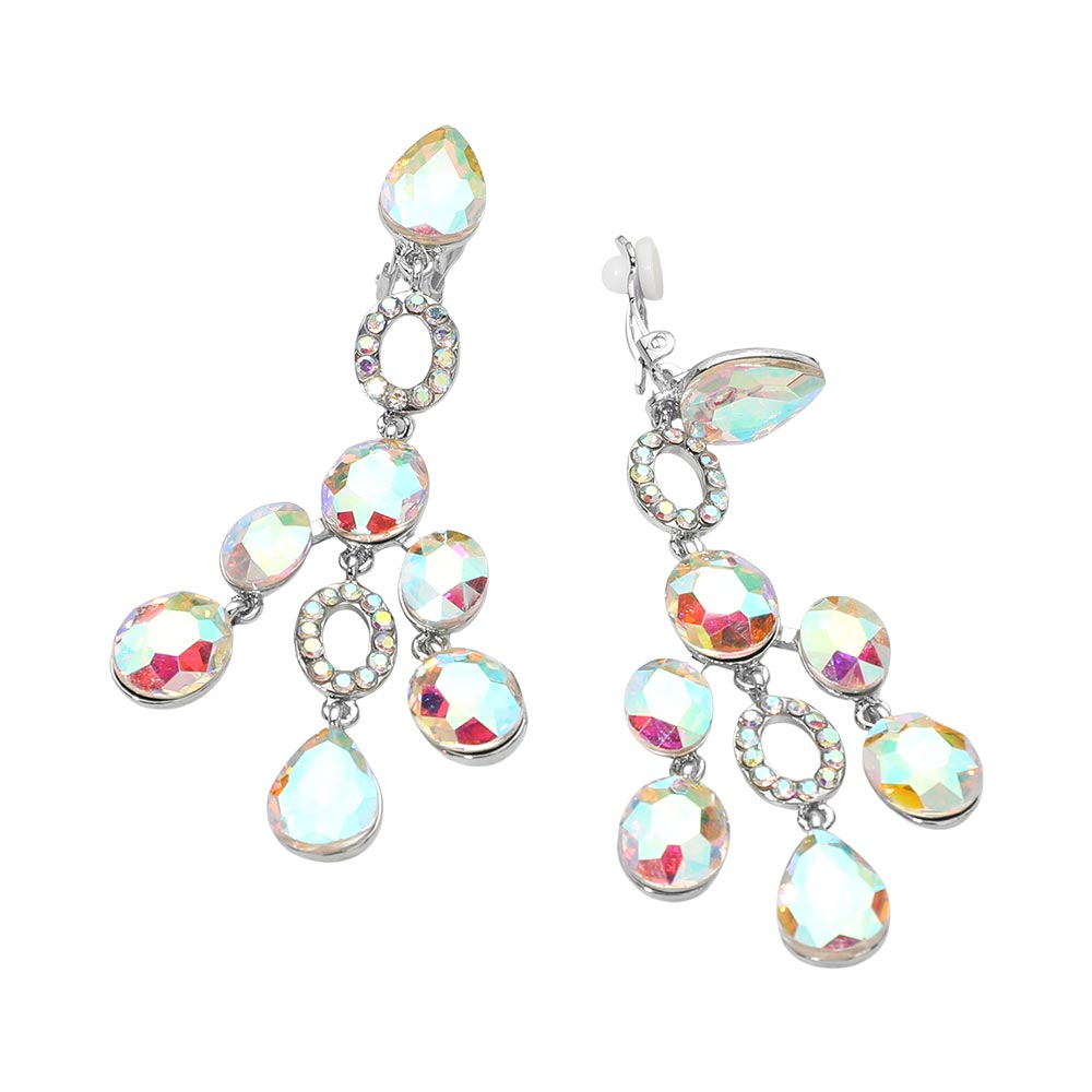 • Statement chandelier earrings featuring cascading faceted accents with a clip-on design for comfortable, secure wear. Ideal for special occasions, evening looks, and boutique collections, offering elegant movement, eye-catching sparkle, and versatile styling appeal without pierced ears.