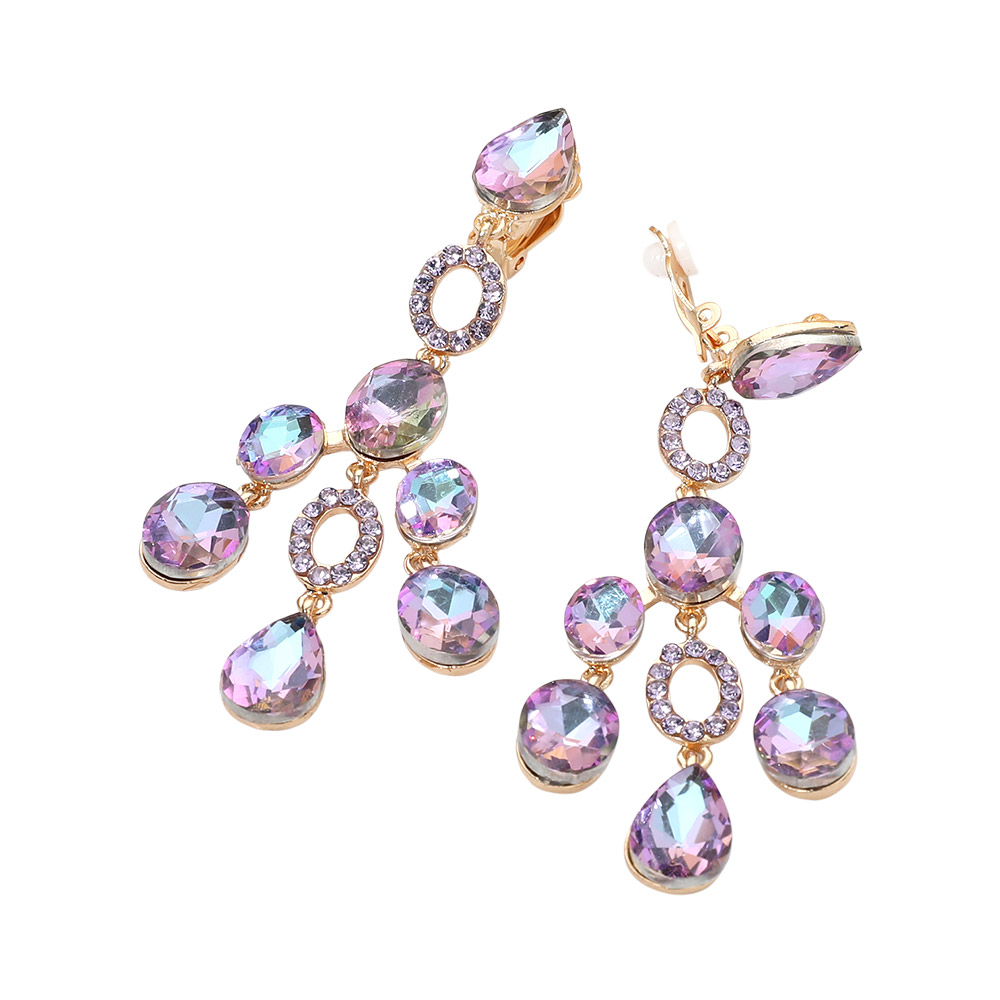 • Statement chandelier earrings featuring cascading faceted accents with a clip-on design for comfortable, secure wear. Ideal for special occasions, evening looks, and boutique collections, offering elegant movement, eye-catching sparkle, and versatile styling appeal without pierced ears.