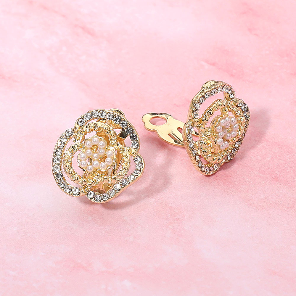Details • Size : 0.75" X 0.75" • Clip On • Add timeless charm to your look with these floral clip-on earrings featuring a central cluster of pearls surrounded by shimmering crystal-lined petals. Their elegant, vintage-inspired design offers effortless glamour and comfortable wear for any occasion without the need for pierced ears. • Lead and Nickel Compliant