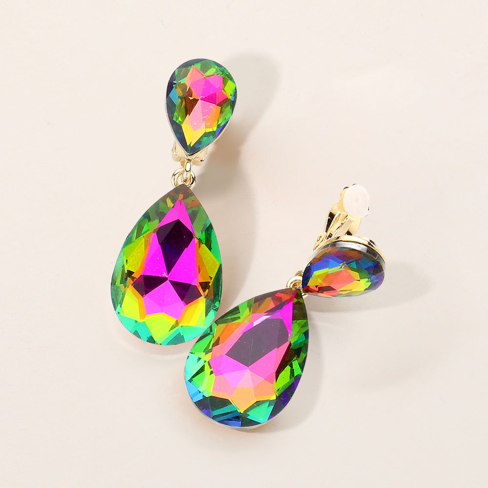 • Chic teardrop crystal clip-on earrings with a stunning faceted finish for timeless elegance. Designed for comfort without the need for piercings, these lightweight earrings add refined sparkle to any outfit—ideal for formal events, parties, or evening occasions.