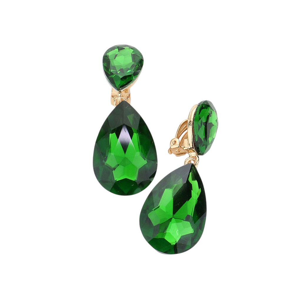 Glass Crystal Double Teardrop Clip On Evening Earrings Glass Crystal Double Teardrop Clip On Evening Earrings
