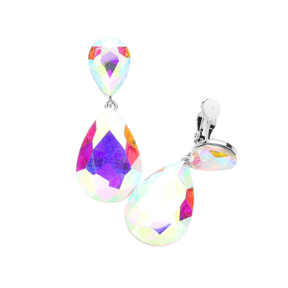 • Chic teardrop crystal clip-on earrings with a stunning faceted finish for timeless elegance. Designed for comfort without the need for piercings, these lightweight earrings add refined sparkle to any outfit—ideal for formal events, parties, or evening occasions.