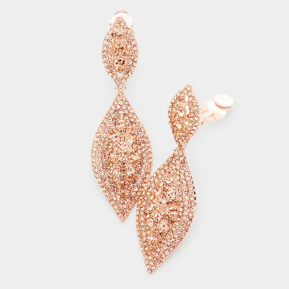 Marquise Rhinestone Pearl Embellished Clip on Earrings