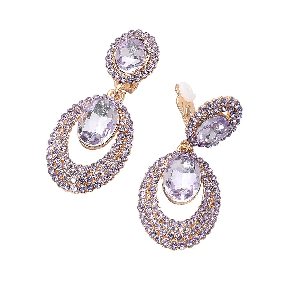 Oval Halo Drop Evening Clip On Earrings Oval Halo Drop Evening Clip On Earrings