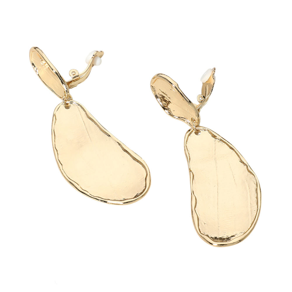 Details • Size : 1.1" X 3" • Clip On • Add artistic flair to your look with these abstract dangle clip-on earrings, featuring an organic sculpted shape that brings a bold, contemporary statement to any outfit. Lightweight, comfortable, and easy to wear without piercings, they’re perfect for chic everyday style or standout occasions. • Lead and Nickel Compliant