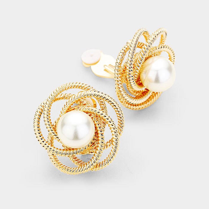 Pearl Centered Multi Stone Bead Cluster Stud Earrings