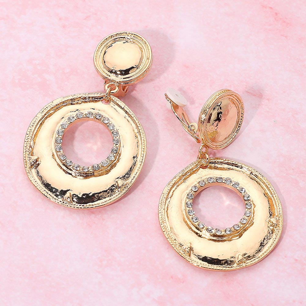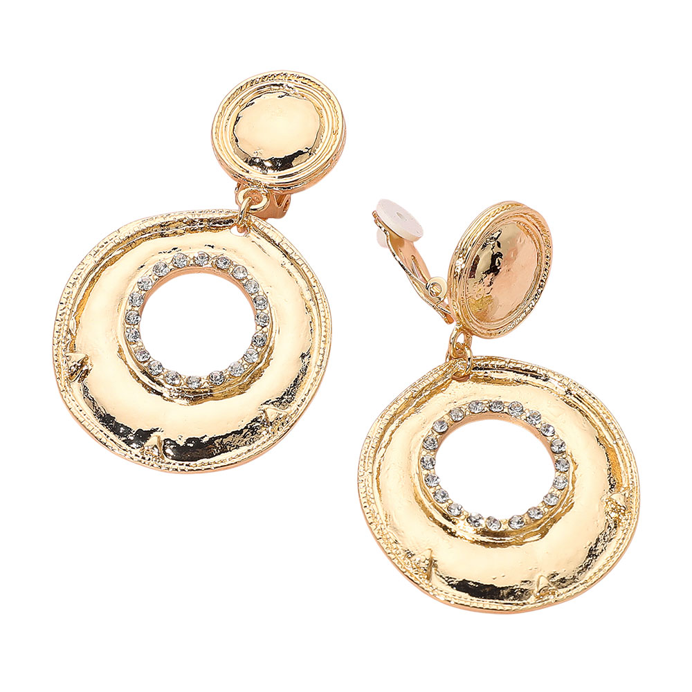 Rhinestone Accent Textured Metal Ring Drop Clip On Earrings Rhinestone Accent Textured Metal Ring Drop Clip On Earrings