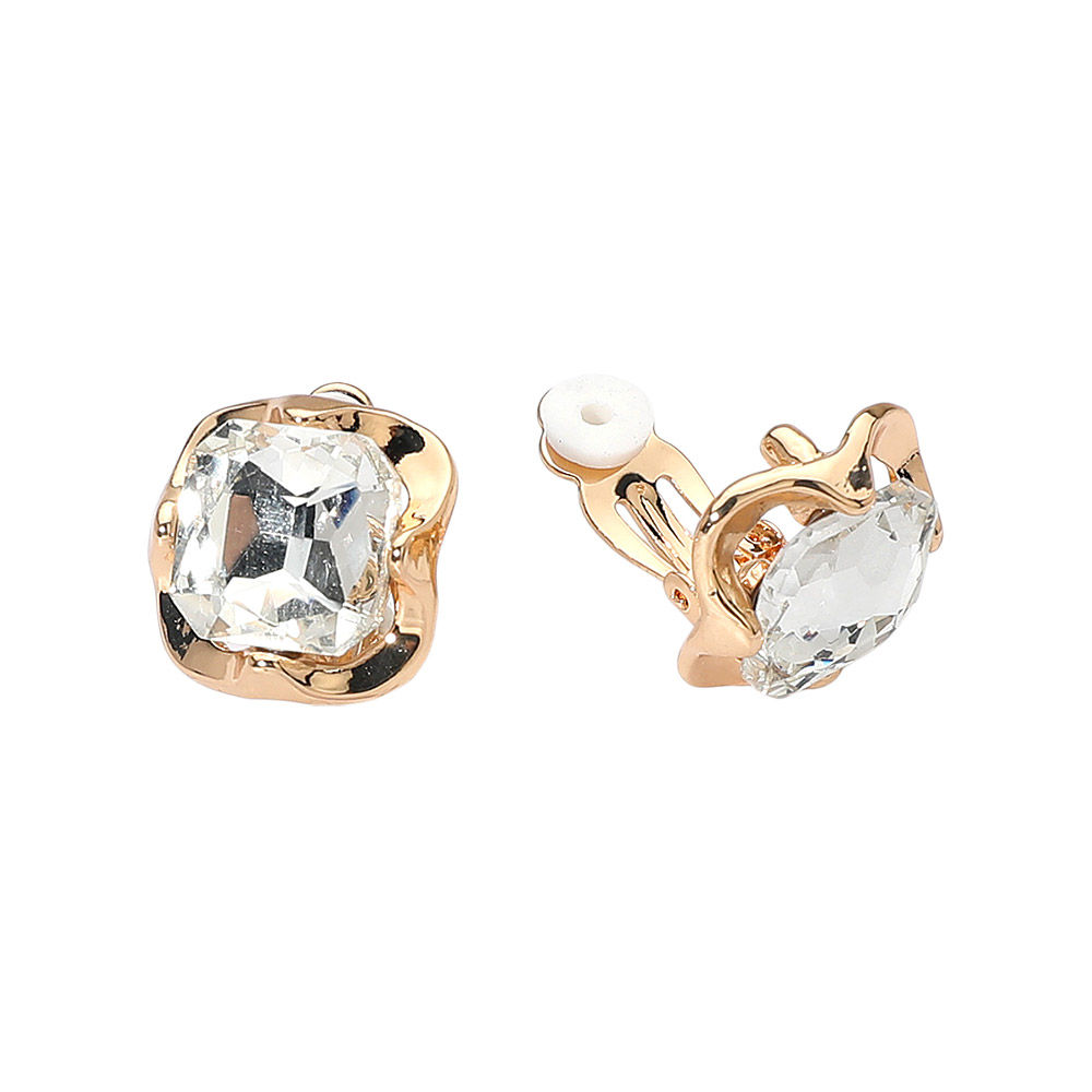 • Elegant square crystal clip-on earrings featuring a faceted gemstone design framed in a chic sculpted setting. Comfortable clip-on style adds timeless shine to both casual and dressy looks, perfect for effortless everyday elegance.