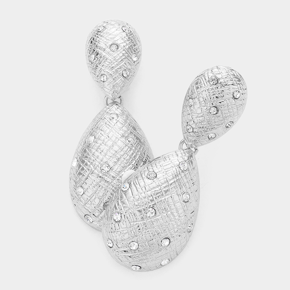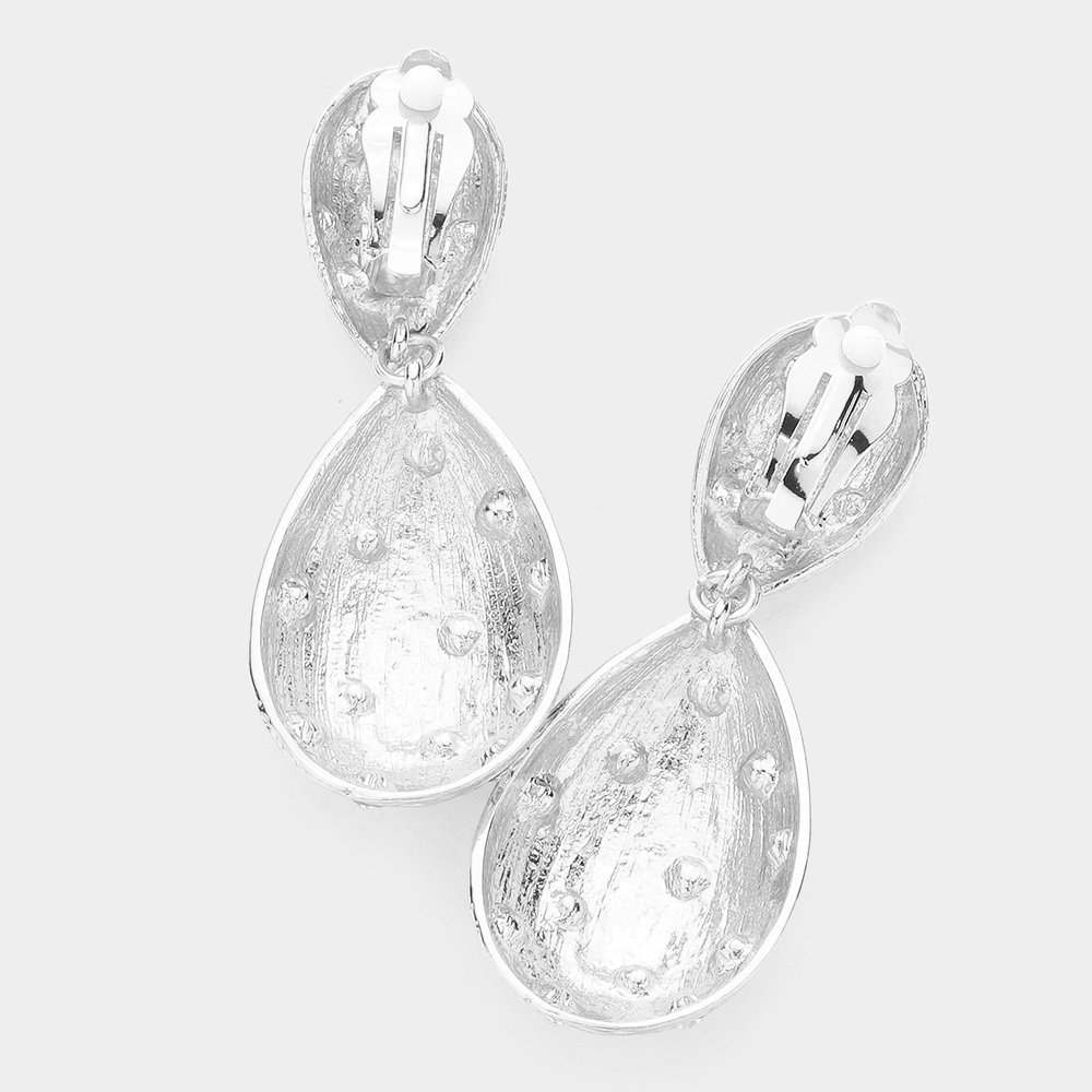 Stone Embellished Teardrop Dangle Clip On Earrings