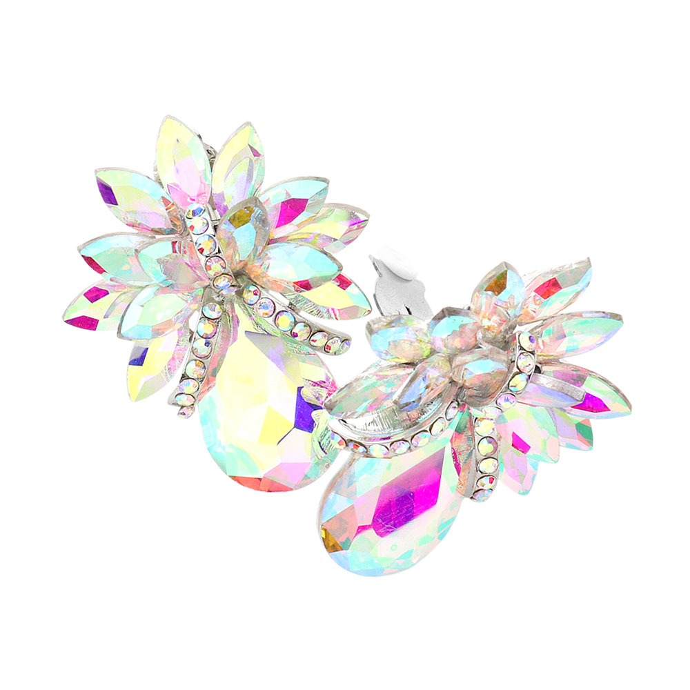 Details • Size : 1.75" X 2.25" • Clip On • Stunning clip-on earrings designed with a leaf cluster arrangement and dazzling crystal accents. These bold statement earrings add a glamorous touch to any outfit, perfect for parties, weddings, and evening events where timeless sophistication meets modern sparkle.