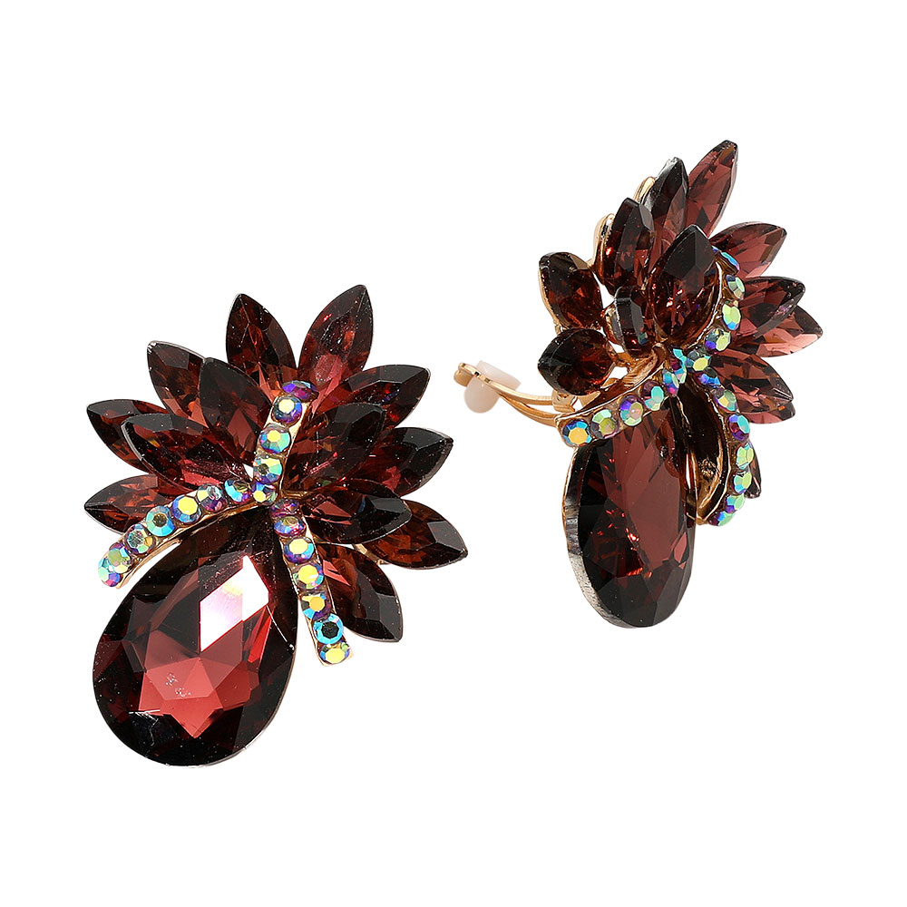 • Stunning clip-on earrings designed with a leaf cluster arrangement and dazzling crystal accents. These bold statement earrings add a glamorous touch to any outfit, perfect for parties, weddings, and evening events where timeless sophistication meets modern sparkle.