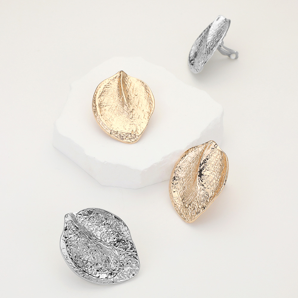 Textured Metal Leaf Clip On Earrings