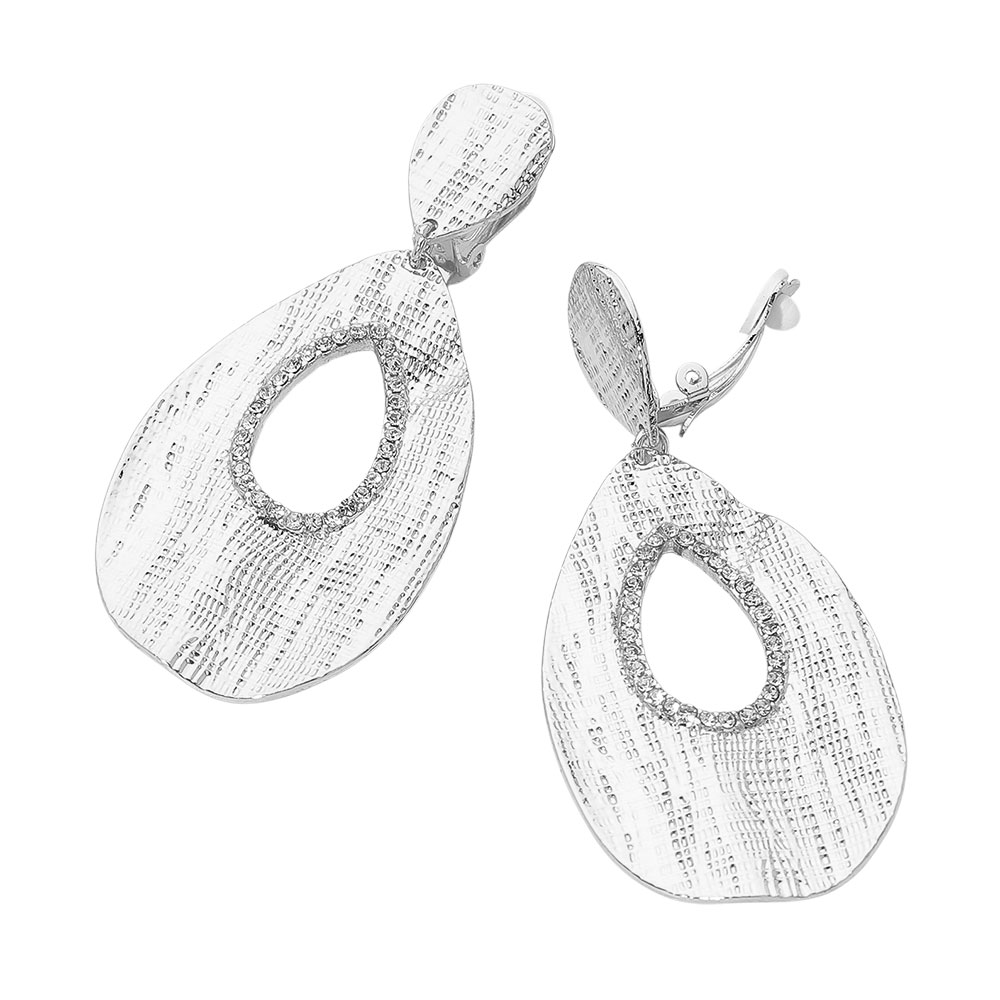 • Elevate any outfit with these textured teardrop clip-on earrings featuring an open-center design outlined in sparkling accents. Their sculptural shape adds modern elegance and bold flair, making them a standout accessory for both special events and stylish everyday looks.