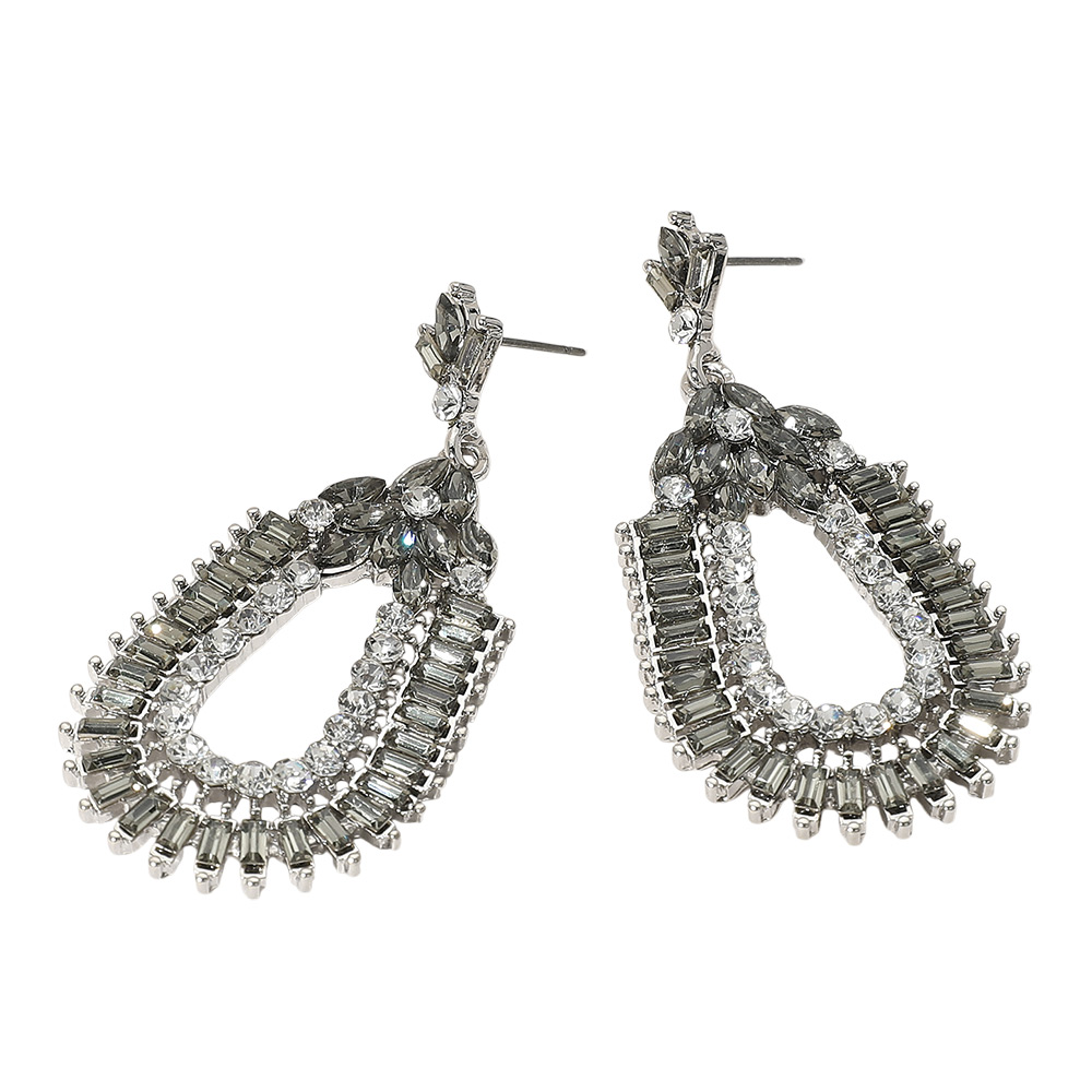 Details • Size : 1.2" X 2.5" • Post Back • Elevate your look with these elegant statement drop earrings. Designed for special occasions, their intricate design and sparkling accents offer a glamorous touch to eveningwear, weddings, or holiday parties. A must-have accessory. • Lead and Nickel Compliant