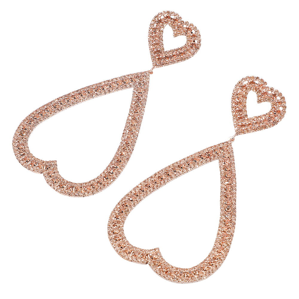 Bold Rhinestone Studded Open Heart Drop Dangle Statement Evening Earrings