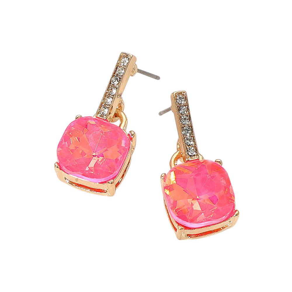 Cushion Square Stone Dangle Evening Earrings