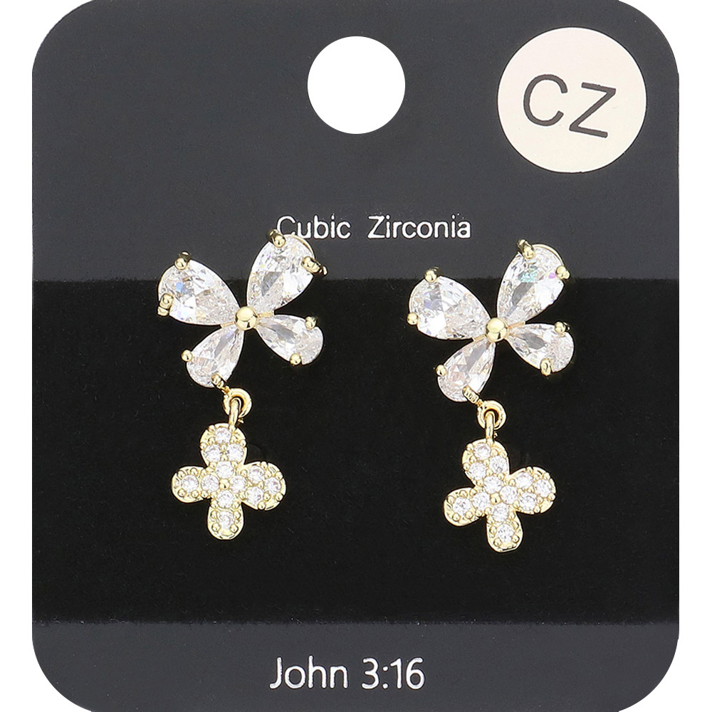 Rhombus CZ Stone Cluster Dangle Butterfly Pointed Evening Earrings