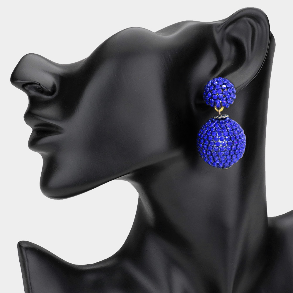 Double Rhinestone Ball Dangle Evening Earrings Double Rhinestone Ball Dangle Evening Earrings
