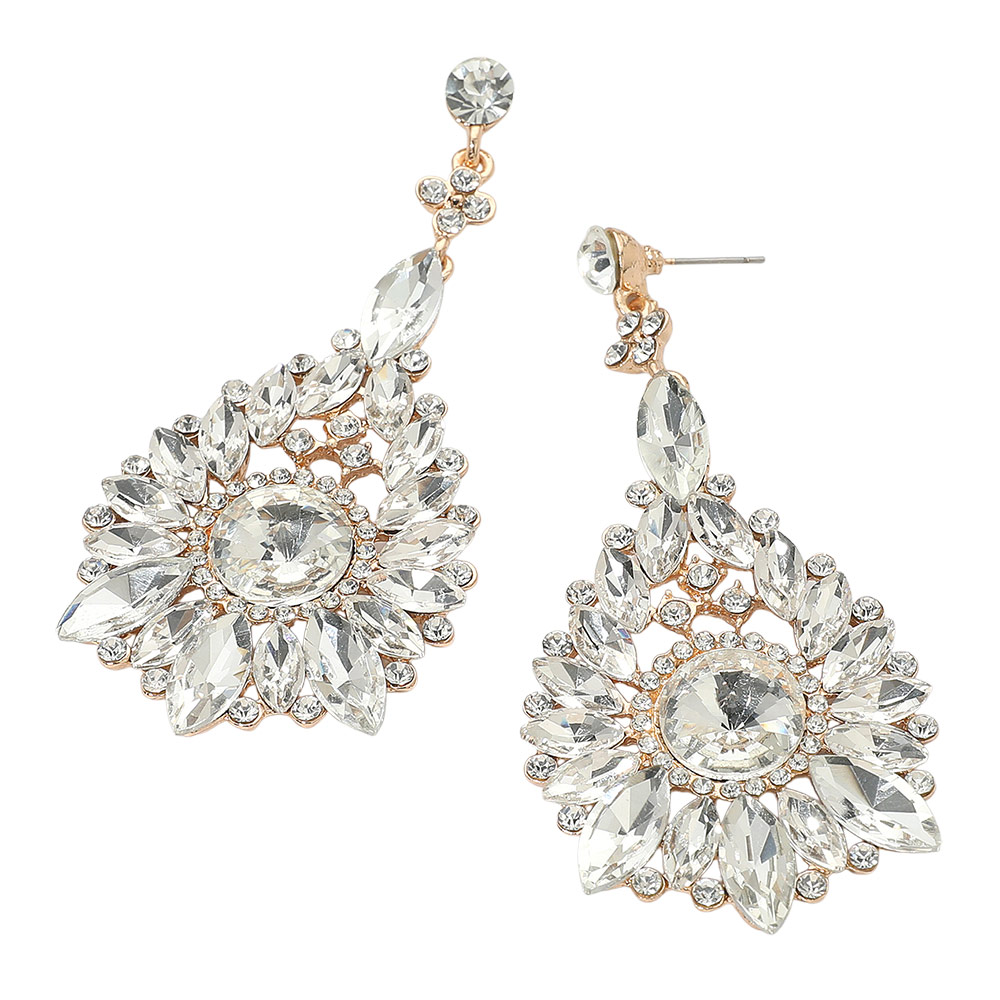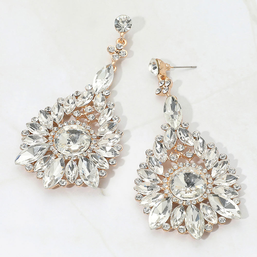 Elegant Marquise Round Stone Cluster Teardrop Evening Earrings