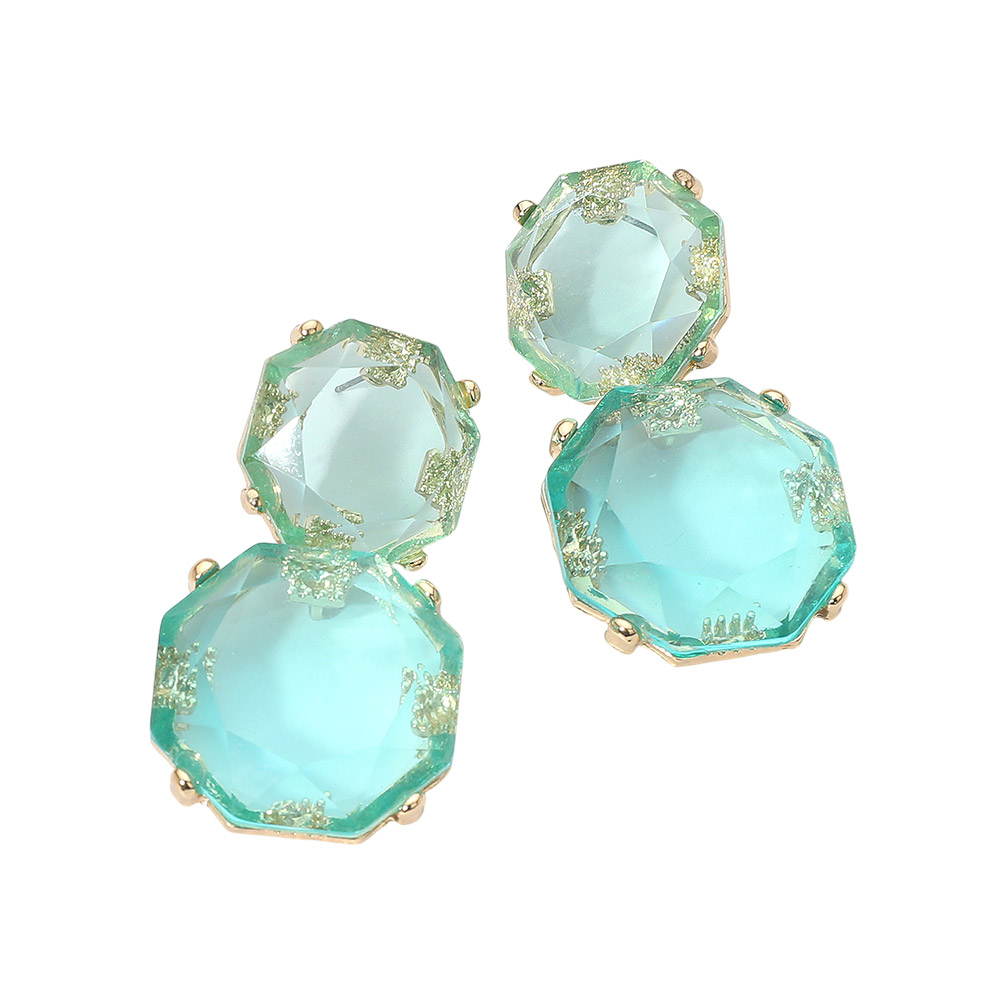 • These faceted double gem drop earrings feature a striking octagonal design that reflects light with every movement. Their elegant, layered silhouette adds a refined touch, making them a standout accessory for both casual and formal occasions.